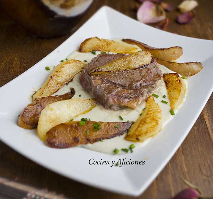 Solomillo con peras y queso azul Peñasanta, receta paso a paso.