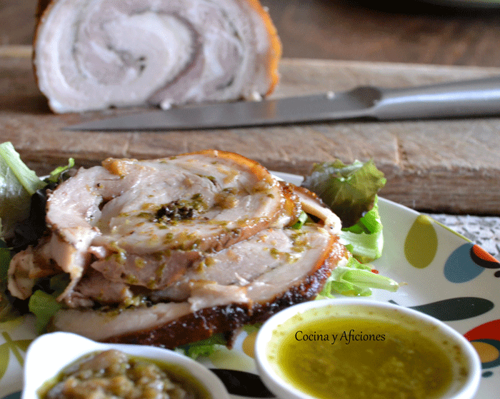 Tapa de porqueta a las especias con jalapeños y gremolata, receta paso a paso.