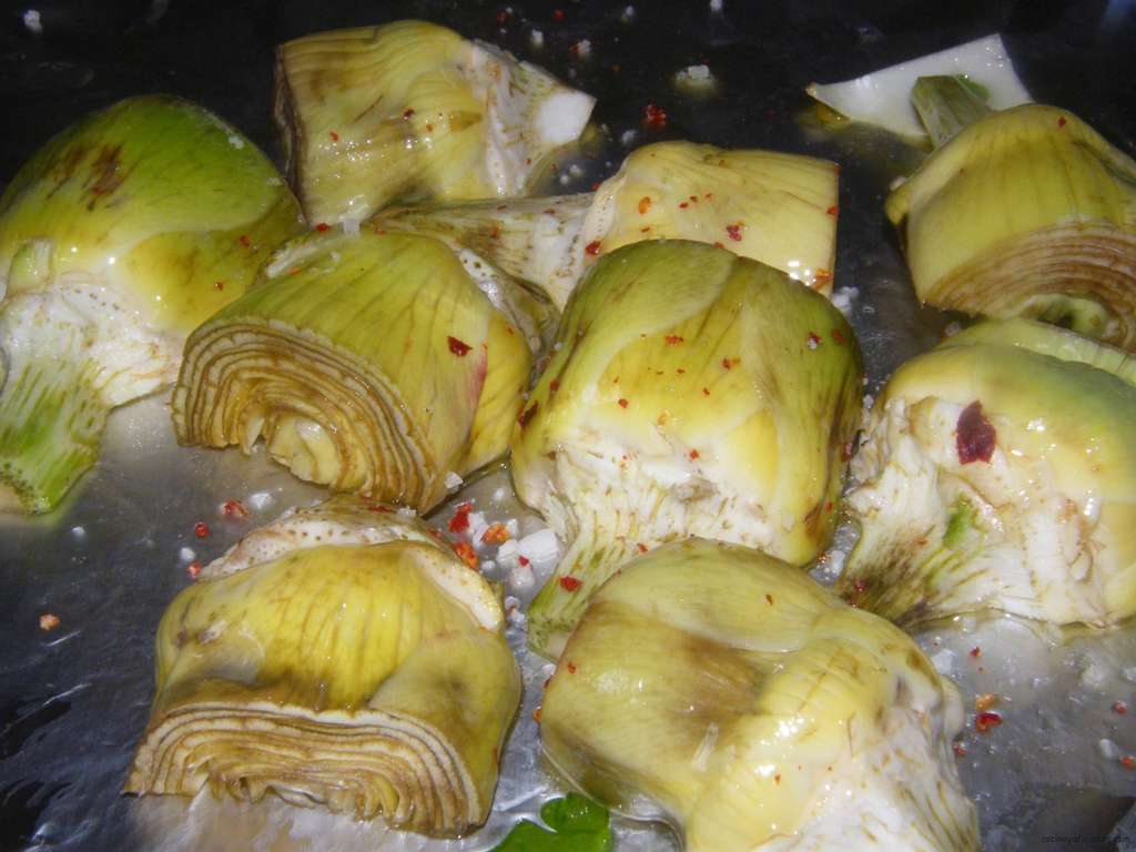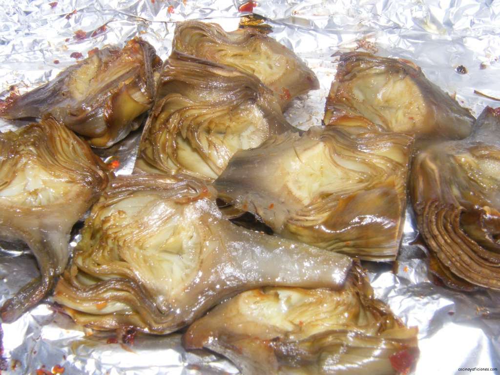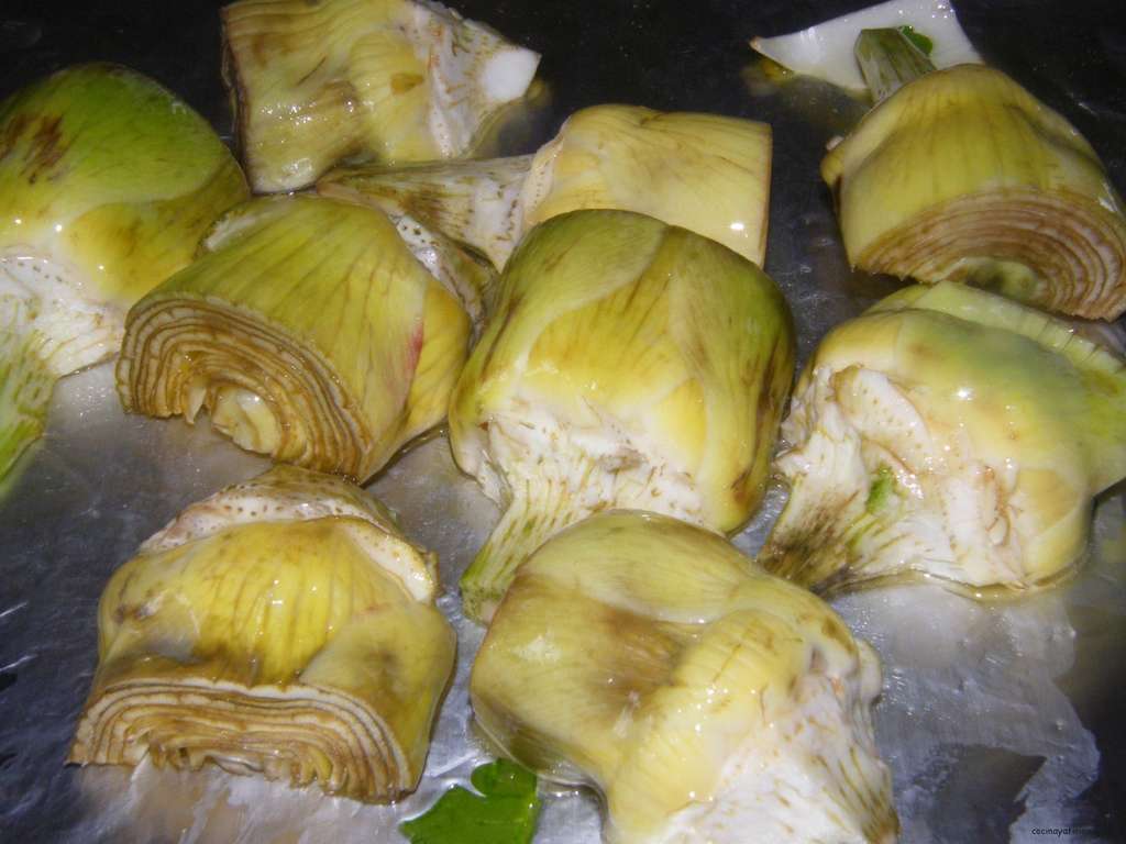 PARA LAS ALCACHOFAS: 8 alcachofas, aceite de oliva virgen extra, sal de guindilla.