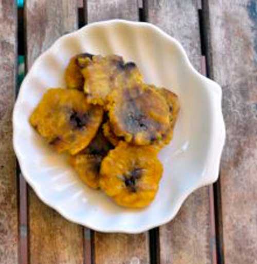 – Justo antes de presentarlos a nuestros comensales freímos los patacones en aceite muy caliente, que se doren rápidamente, nos quedaran crujientes y deliciosos.
