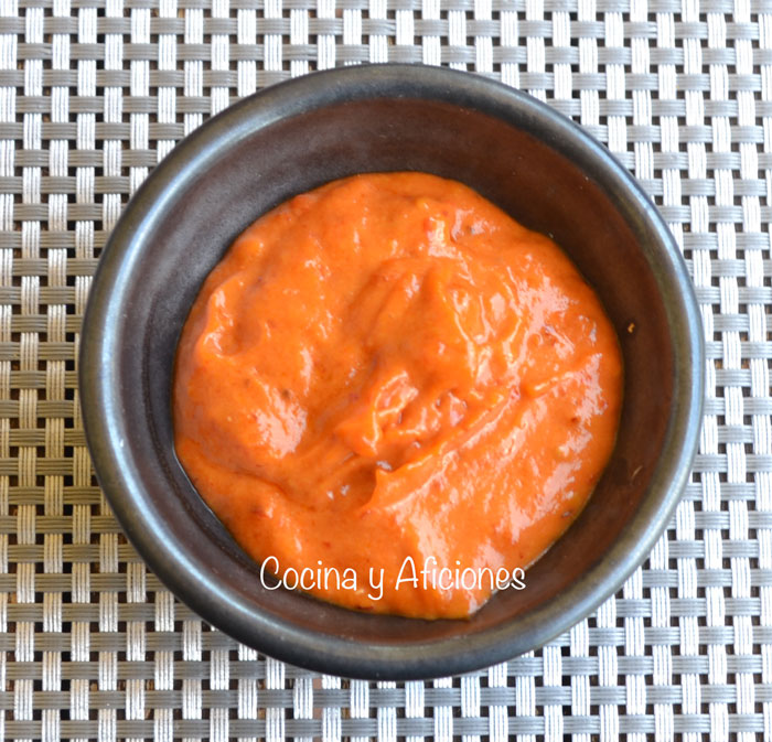 - Ponemos las dos hojas de gelatina a remojar en agua fría unos 5 minutos, las añadimos a la salsa de tomate, la mezclamos muy bien con las varillas.