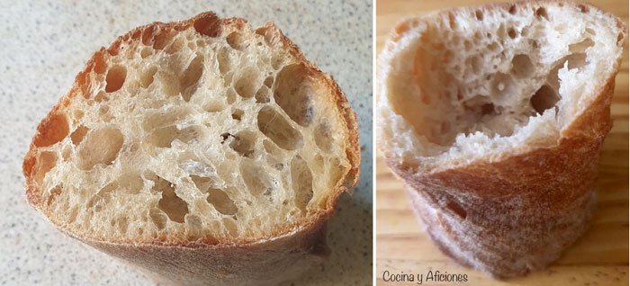 El pan de cristal tiene una corteza con mucha textura que le da un punto crujiente delicioso y una miga llena de alveolos, frágil y delicada