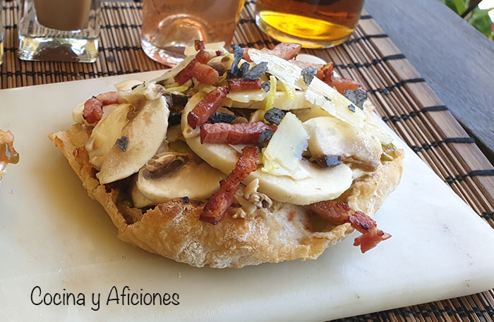 También admite que le pongas todo lo que te apetezca, solo lo tienes que tostar al horno para que se ponga crujiente y delicioso. vamos a preparar un Pan de cristal con carpaccio de champiñones