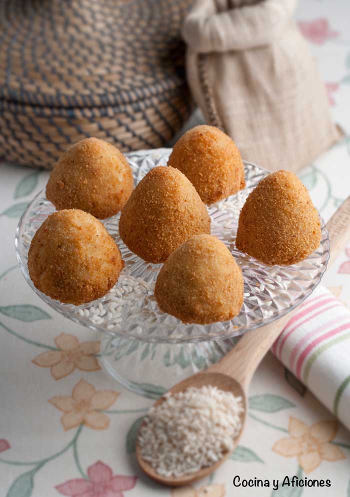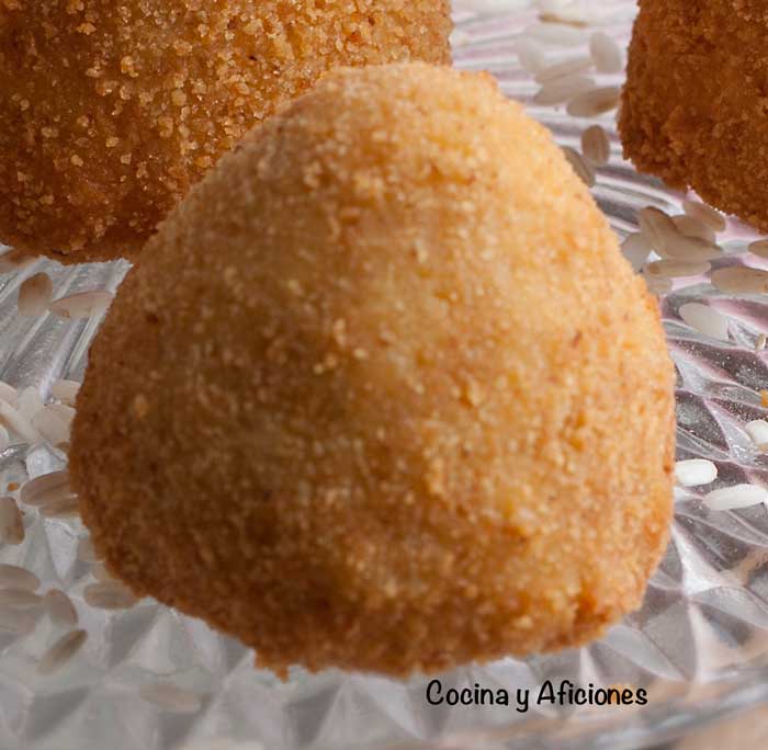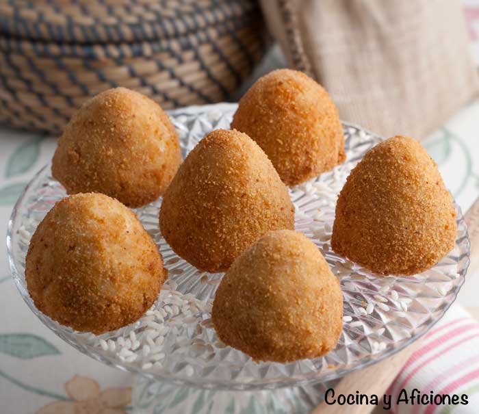 Son unas croquetas con forma cónica que se elaboran con arroz, nosotros los vamos a preparar elaborando un risotto tradicional, bien mantecado con parmesano y con su toque de mantequilla.