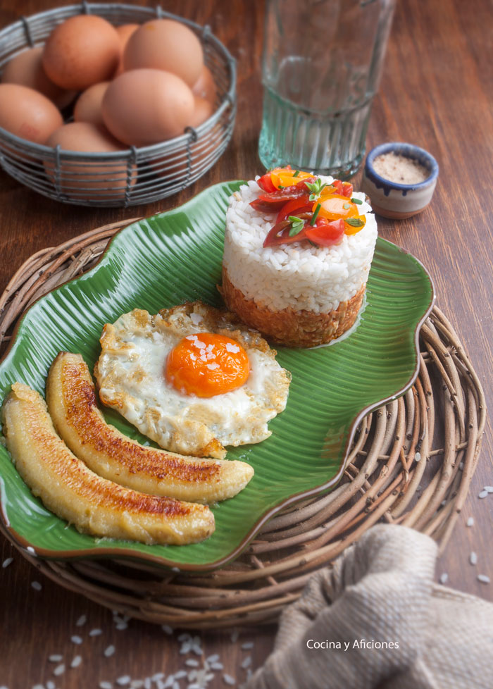 Hoy nos toca una clásico arroz a la cubana, un plato sencillo y emblemático en los hogares españoles, una comida sencilla pero deliciosa que nos hacia muy felices en nuestra infancia, para mí el día que lo comíamos era una fiesta, es un plato que me encanta y el plátano frito todo un acontecimiento gastronómico delicioso.