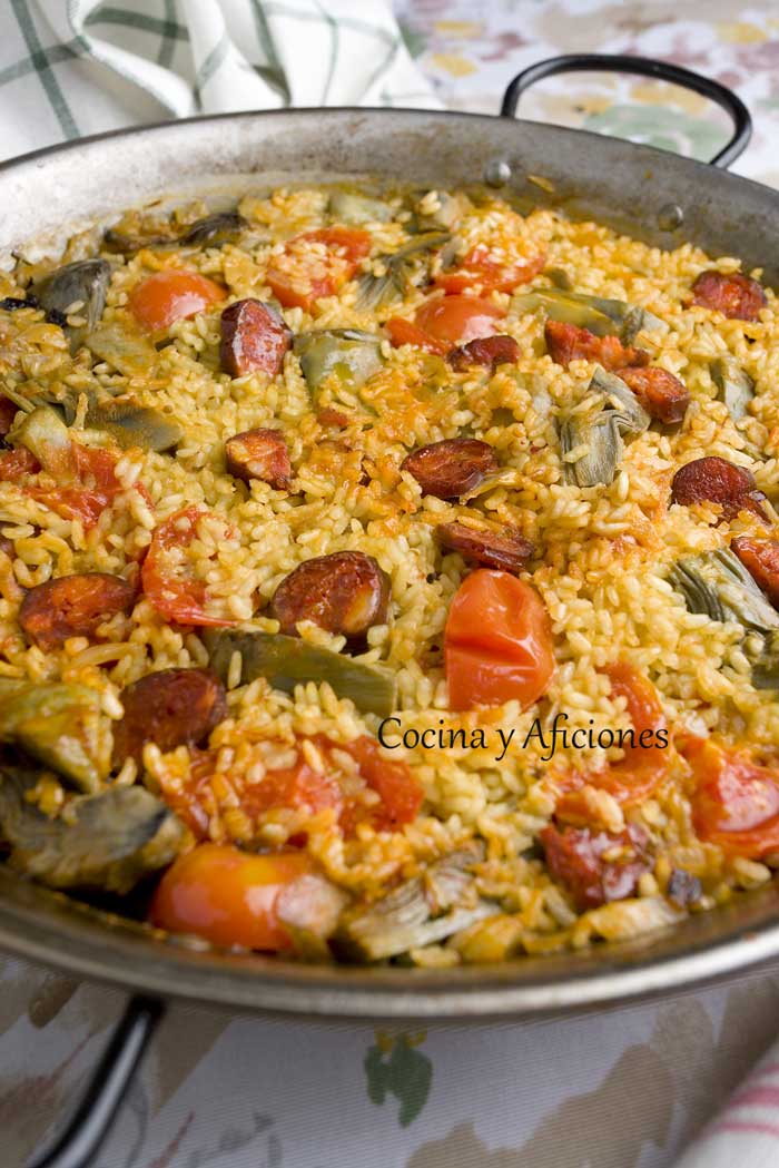 Este arroz tan casero lo voy a cocinar en una paella ya que mi objetivo es conseguir un arroz extendido y fino que se pegue por abajo, obteniendo un delicioso “ socarrat” que será la delicia de mis comensales. Este arroz con chorizo ibérico en paella es contundente, con mucho sabor y amigos, está para chuparse los dedos.