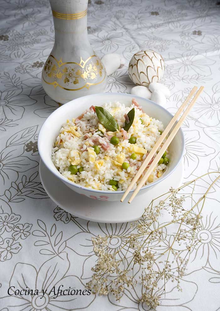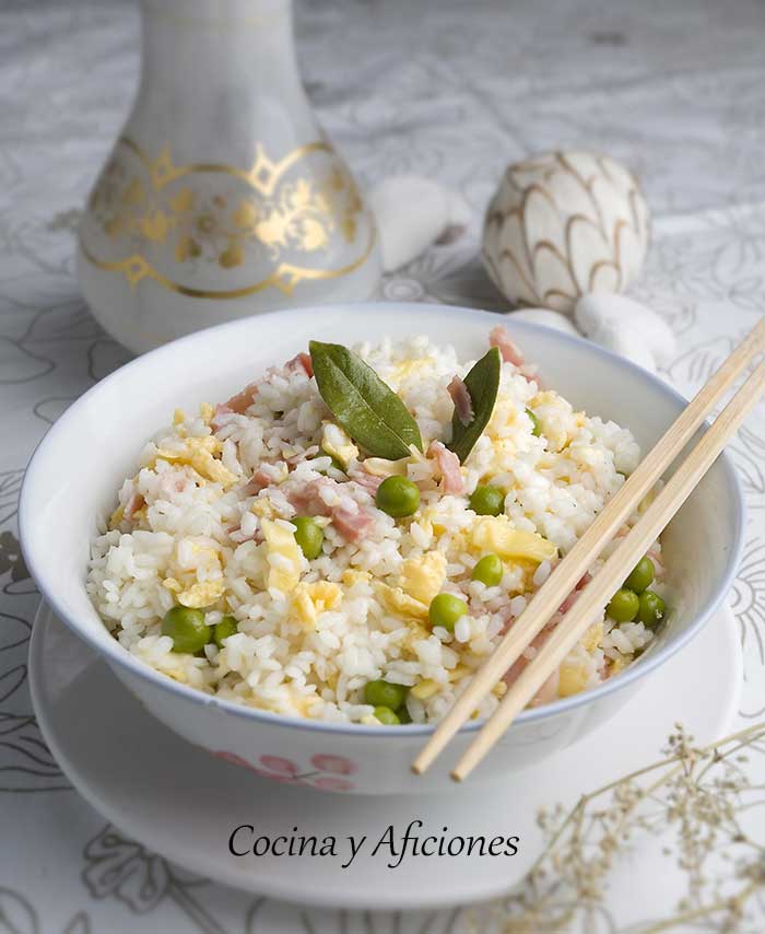 Este arroz es el típico de los restaurantes chinos el “tres delicias” de toda la vida, pero lo vamos a convertir en arroz cuatro delicias, le hemos puesto un extra de sabor.