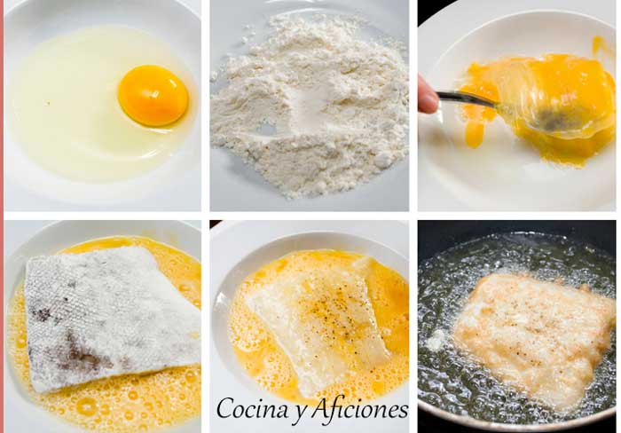 - Lo pasamos primero por harina, después por el huevo, que se impregne bien de los dos ingredientes