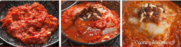 ¿Cómo hacer bacalao con tomate, pasas y piñones?