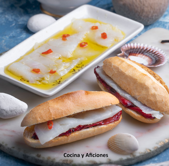Terminamos con el la estrella del bocadillo,  el bacalao desalado y marinado en aceite de oliva virgen extra que esta super rico, es diferente y con un sabor increíble.