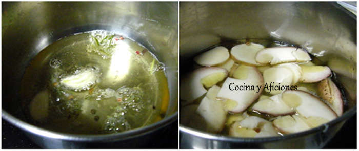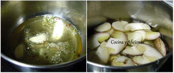 Nunca y subrayo la palabra nunca, debe hervir, en cuanto empiecen a salir burbujas los retiramos un momento para que baje la temperatura y los volvemos a poner al fuego, repetir esta operación cada vez que se caliente demasiado. Es una cocción a fuego lento y a baja temperatura.