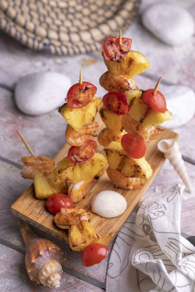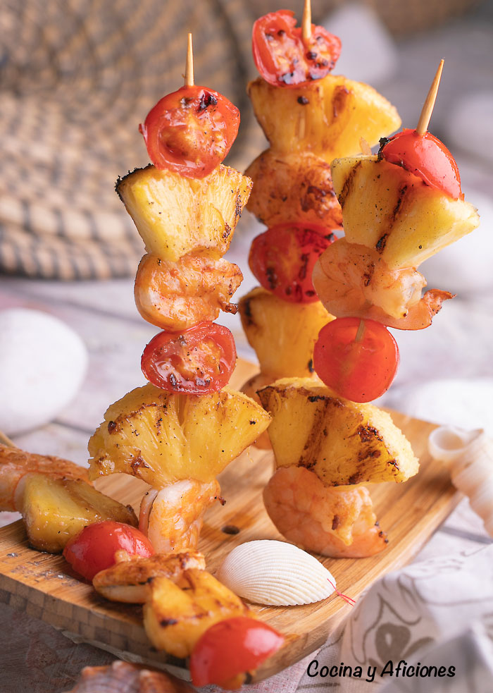 ¿Cómo preparar las brochetas de piña natural y gambas a la plancha?: