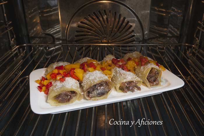 Canelones de patata rellenos de rabo de vaca, un plato de fiesta.
