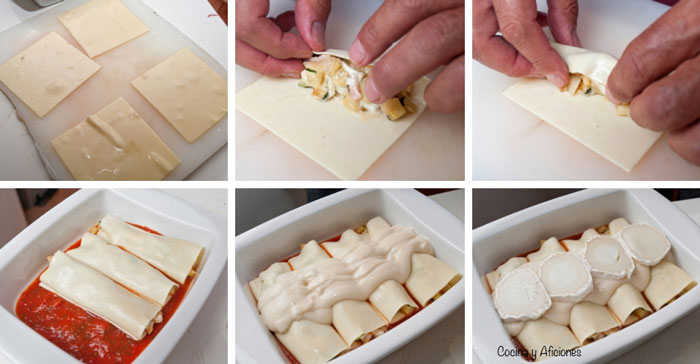 Consejos para que te salga canelones rellenos de calabacín, manzana, mozzarella y gratinados con queso de cabra.