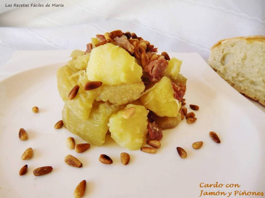 • Las recetas fáciles de Maria: Cardo con almendras tostadas y jamón; Cardo con jamón y piñones