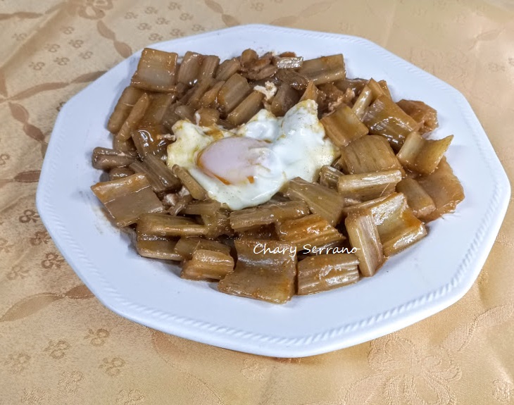 Pencas de cardo esparragadas con huevo