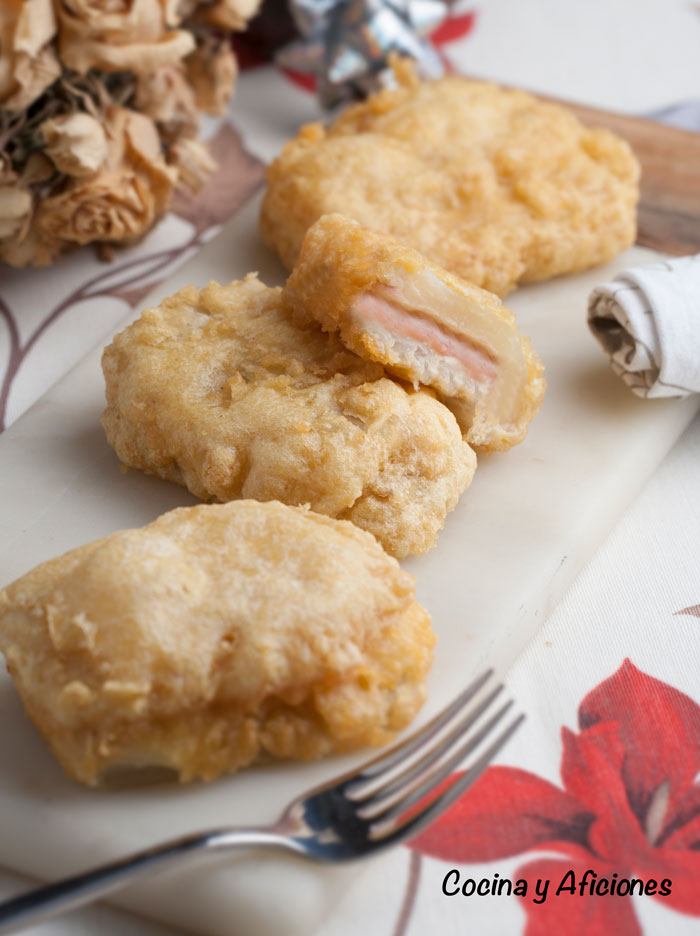 5. A continuación, introdúcelas en la masa que se impregne bien y fríelas en una sartén con el aceite caliente.