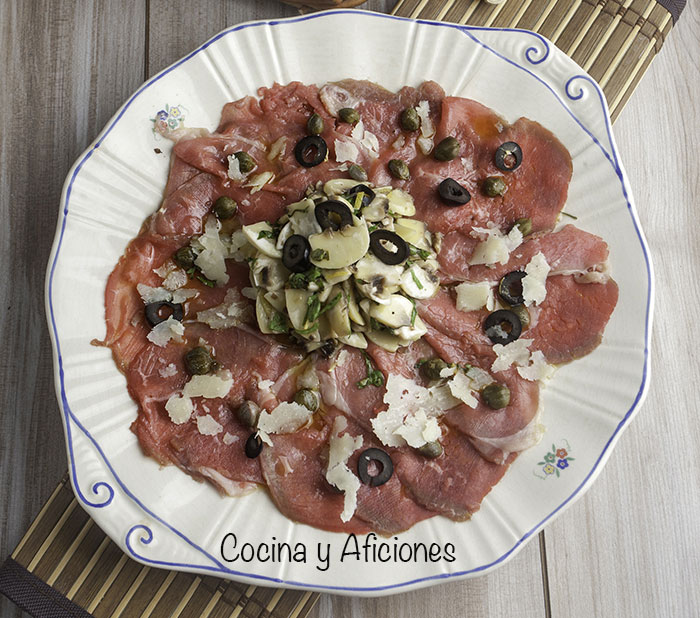 Este carpaccio es tradicional pero con un toque refinado y diferente, vamos a darle un plus de sabor ya que nos encanta el carpaccio pero no queremos comerlo siempre igual.