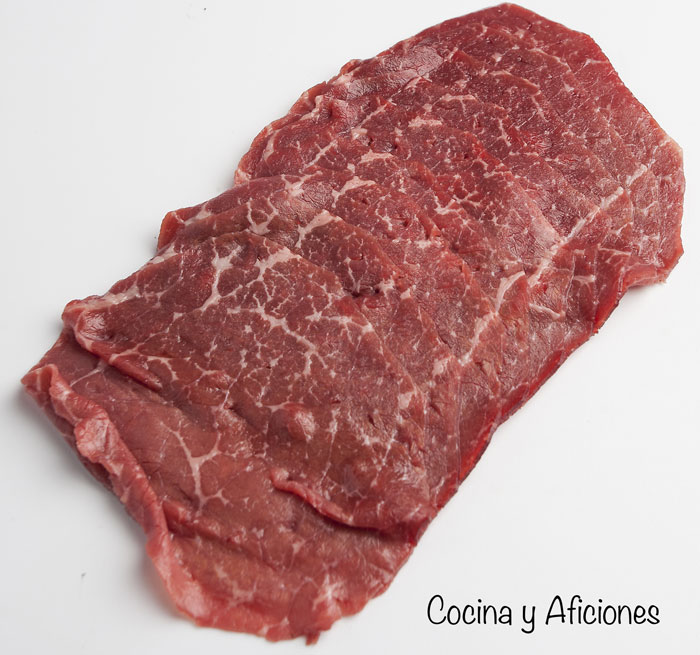 - 1 taco entrecot cortado en lonchas finas del mismo tamaño,