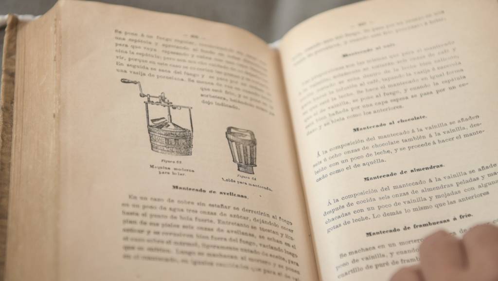 Este trabajo nace de la colaboración entre la Biblioteca Nacional y Tramontana una firma española de diseño y estrategia digital que tras un largo trabajo de fondo dirigido por Gabriela Lendo que ha seleccionado doce recetas de doce libros que son tesoros bibliófilos, desde los primeros tratados como el “garum” que han sacado la receta de “Re coquinaria” de Apicio hasta un libro de los albores del SXX como es la “Cocina Moderna” de Carmen Burgos de 1911.