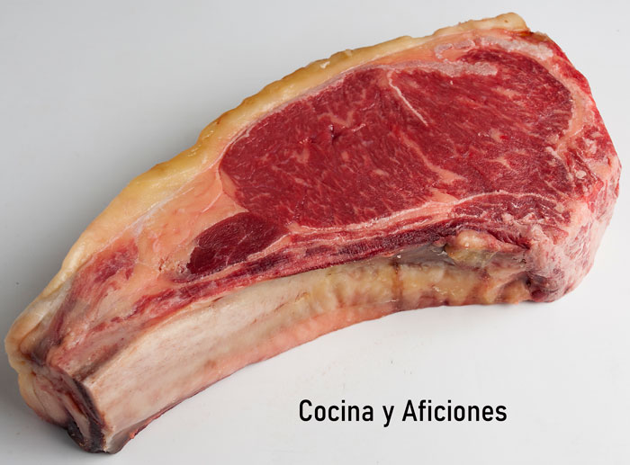 El punto más importante para que este plato sea un éxito es elegir la mejor materia prima, por eso nos hemos ido a la Finca Jiménez Barbero y hemos elegido esta rico chuletón  de vaca de dehesa que esta para morirte de rica, es tierna y jugosa y la calidad y el buen resultado esta garantizado.