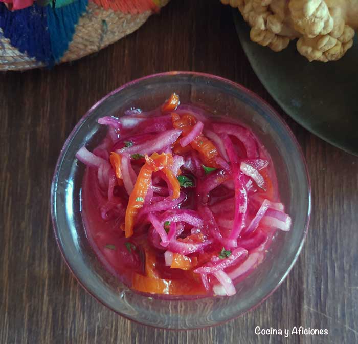 Es una salsa como un mojo. absolutamente deliciosa que utilizado para otros platos con un resultado estupendo, le añades un poquito a las verduras, el arroz o lo que la imaginación te dicte y veras como luce tu plato con un color brillante y un sabor estupendo. Por eso le llaman “el azafrán de los pobres” y se utiliza para teñir todo tipo de elementos ya sean comida u otros objetos como telas, cueros….
