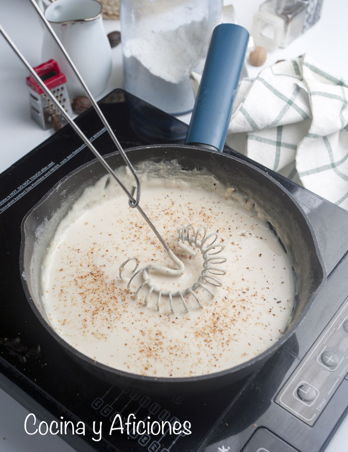 - Incorporamos la nuez moscada la sal y la pimienta. cocinamos hasta que no sepa harina, la dejamos espesar