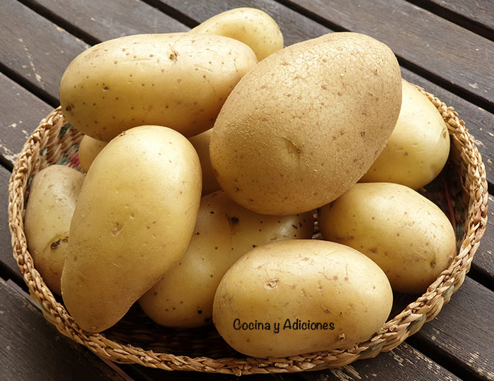 - Cortamos las patatas en lonchas finas y las freímos, a fuego suave primero y después a fuego fuerte hasta que empiece a dorar el borde