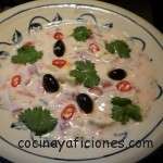 Raita (ensalada) de pepino y tomate, receta: A esta ensalada universal la podemos llamar raita (India), satsiki (Grecia), Cacik (Turquía), salatah khir bi lavan (Líbano), etc….. es una ensalada muy apreciada en infinidad de países. La base es la misma en todos: el pepino y el yogur, luego cada uno le da su enfoque étnico. Esta Raita tiene mi toque personal, la he elaborado con los ingredientes que me han apetecido, añadiendo tomate que no forma parte de ninguna de las recetas citadas, tampoco cuentan con el lemongrass que le aporta aromas y un punto cítrico, le agregamos guindilla para darle la gracia picante y aceitunas para decorar. El resultado una ensalada ideal para los días de verano, fresca y nutritiva.