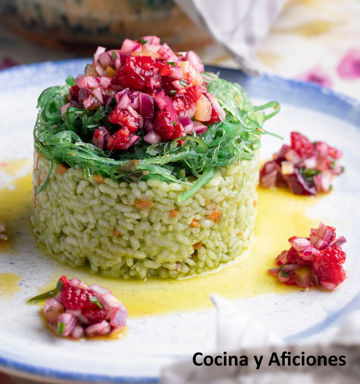 Estamos ante un ‘timbal de arroz, wakame y vinagreta de frambuesas‘ espectacular, es una ‘ensalada’ perfecta, llena de alimento y sabor, que va aderezada con una vinagreta genial, acida y dulce, con el contraste del dulzor del vinagre de Módena y la acidez de las frambuesas, es un maravilla llena de intensidad que hará la […]
