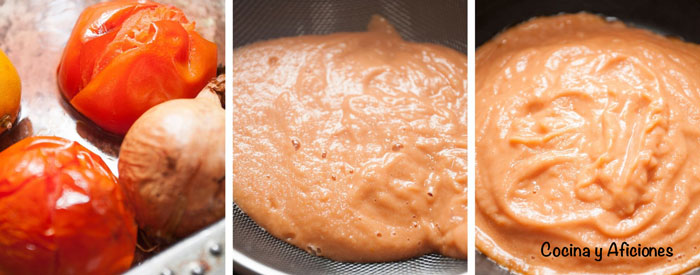 Es importante que aproveches al máximo la salsa del asado, desglasa la bandeja del horno y ráscala para aprovechar al máximo todo lo repegado que es una fuente de sabor estupenda, luego la trituramos, la cuelas y al fuego a reducir hasta la cuarta parte, que te quede una salsa muy espesa y con mucho sabor, será fundamental en el resultado final de tu plato.