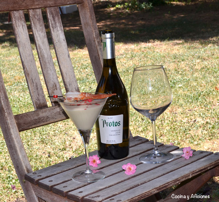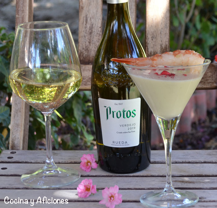 Ante un plato tan elegante necesitaba un gran vino para acompañar y que mejor un verdejo de Bodegas Protos que cumple con mis expectativas a las mil maravillas. Es fresco a más no poder y uno de mis blancos favoritos ya que marida a la perfección con mi gazpachuelo o con cualquiera de mis aperitivos o pescados. Incluso me atrevería a decir que le aporta a mi sopa fría unos matices que no descubrirás sin el vino.