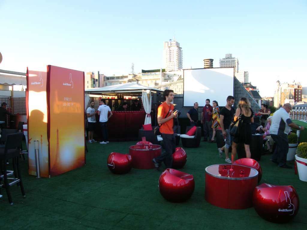 La primera vez que probé el Grand Sunset fue en el  evento de presentación,  en la terraza del Hotel Jardines de Sabatini de Madrid, un sitio con unas vistas increíbles:  el Palacio Real, los Jardines de  Sabatini, los Jardines del Moro, …..,  increíble¡¡, una maravilla. Fue todo un lujo degustar este combinado en  compañía de amigos, estaba Pakus de “Lazy Blog”, Alfonso López de “Recetas de Rechupete”, Carmelo de la “Cocina de Aficionado”  y muchos amigos más. El ambiente era genial y lo pasamos estupendamente, nos sirvieron este cóctel que nos gustó mucho a todos.