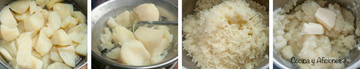 1.- Pela, lava, las patatas, ponlas en una olla, cúbrelas con agua, añade sal y cuécelas hasta que estén tiernas,
