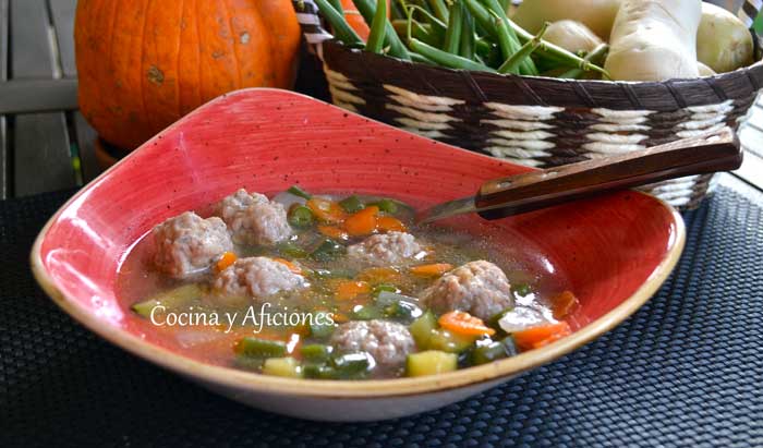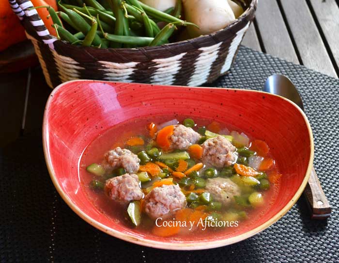 • Que rica esta sopa con mucha verdura como a mi me gusta y con el complemento de las albondigas un plato único y con sustancia, si que aprendemos mucho con este reto, al mes que viene mas y mejor lleno de aromas, esperando estoy lo que nos prepares, besos