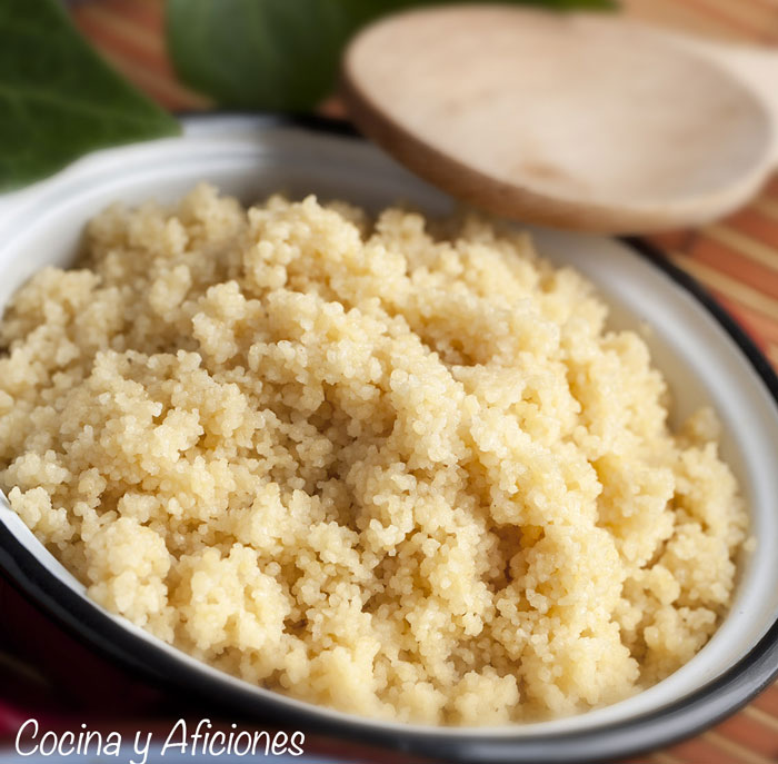 4.- Transfiera el cuscús a un tazón grande moverlo con un tenedor, si está muy seco, agregue más caldo de pescado.