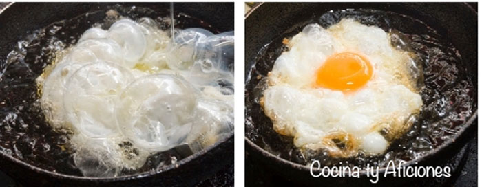 También puedes hacer el huevo frito en dos tiempos, salen genial, si te interesa puedes ver este vídeo:
