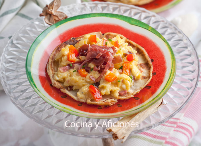 Tortitas con revuelto de jamón ibérico