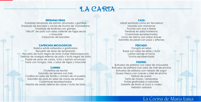 Como ya te señalé al principio sus productos estrella son las setas, la caza, las legumbres y sobre todo la trufa negra de Soria, siempre escogidas y las mejores. Es una comida sana y natural, mimada, cuidada y cocinada al amor del fuego, sin prisas y con cariño.