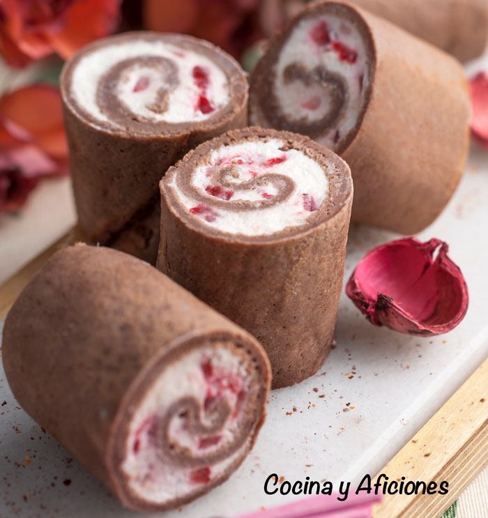 Ingredientes para preparar mini troncos de Navidad con fresas para cuatro comensales: