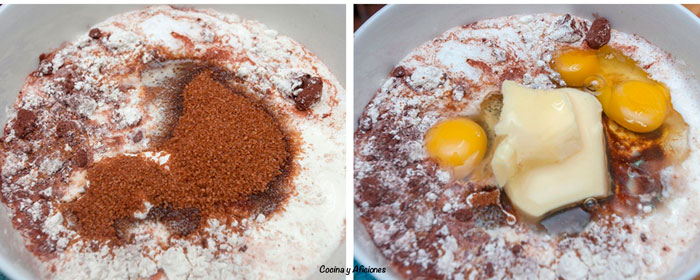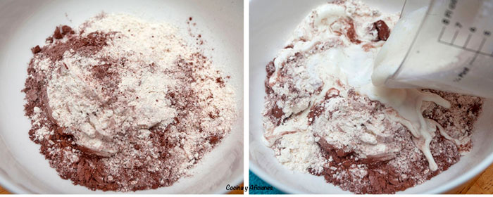 - Mezcla la harina con el cacao, remueve con cuidado para que se mezclen