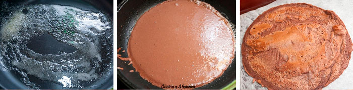 - Vierte la masa en la sartén y espárcela bien por toda la superficie que te quede uniforme.
