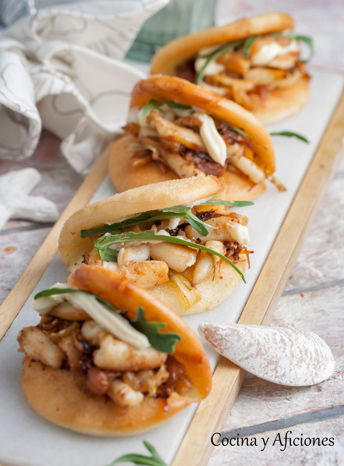 Mini pan bao rellenos de Pulled pork y salsa bourbon