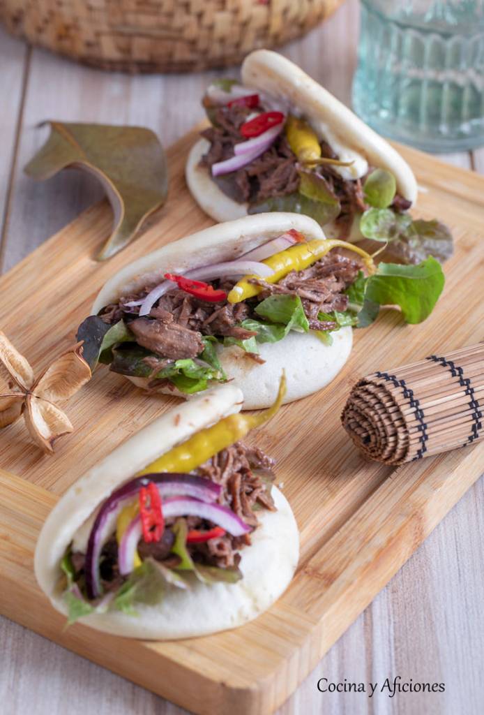 Este el pan bao relleno de guiso de vaca con salsa de legumbres es absolutamente delicioso, lo he rellenado con un guiso muy  sustancioso acompañado con una salsa con mucho sabor.