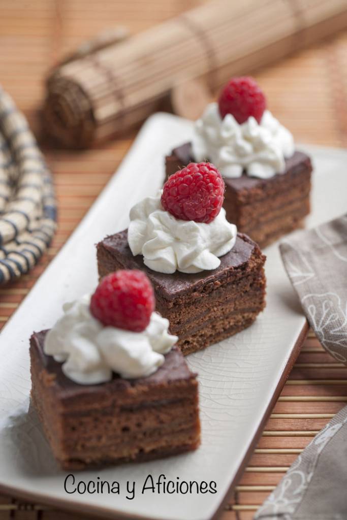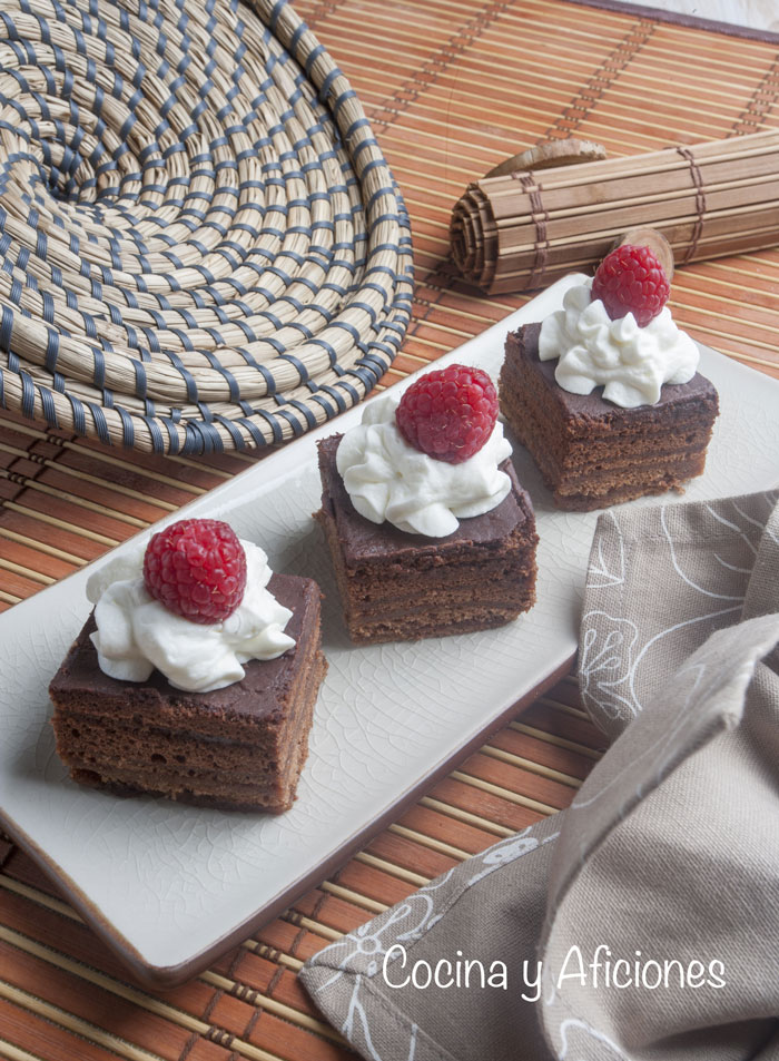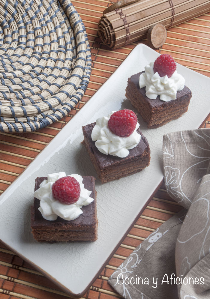 Los pasos para preparar estos pastelitos de chocolate, aunque la receta es larga, son muy fáciles y sencillos un bizcocho que se elabora como todos los bizcochos, una cobertura de chocolate, una mermelada tuneada, nada montada y el toque alcohólico son los pasos de esta receta con la que tendrás el éxito asegurado.