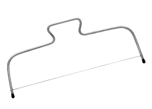 - Para cortar el bizcocho hay unos arcos con un hilo metálico que venden en las tiendas de pastelería, son perfectos para cortar y no son nada caros, se llaman liras.