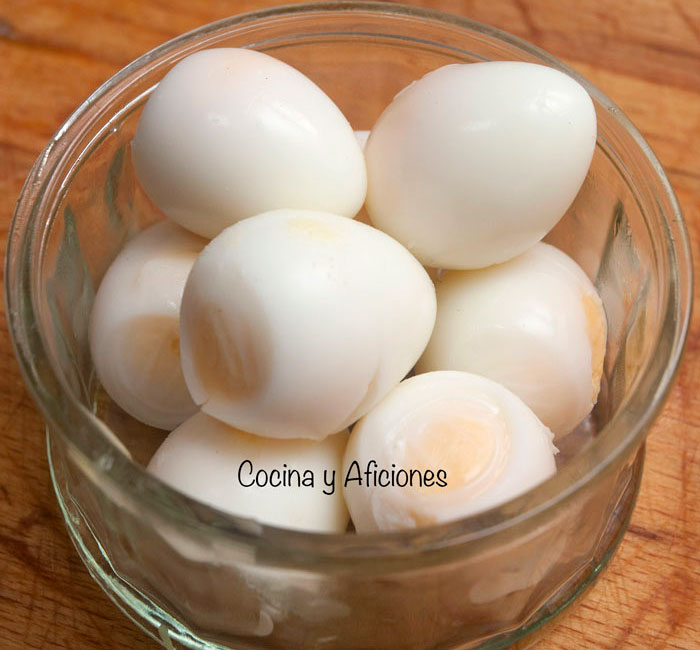 3.- Cocer los huevos de codorniz: 1 minutos desde que empiece a hervir el agua, apagamos y dejamos enfriar en el agua caliente.