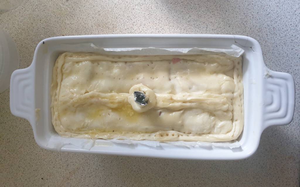 - Ponle una tapa de hojaldre y cierra asegúrate de que quedan los bordes sellados.