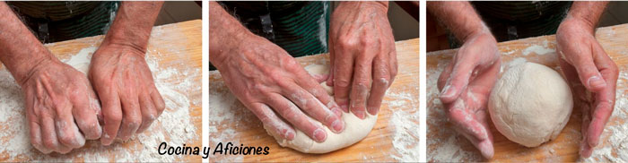 - Empezamos a amasar y vamos añadiendo agua templada hasta que nos quede una masa flexible y blanda.