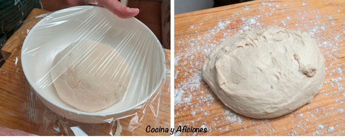 - Amasamos hay que trabajarla bien para que suba, por lo menos 10 minutos.